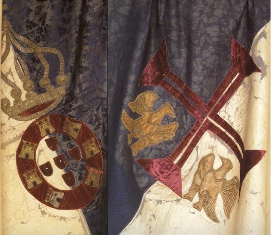 Por cima do açor, e em semicírculo, tem nove estrelas iguais, de oiro, com cinco raios.