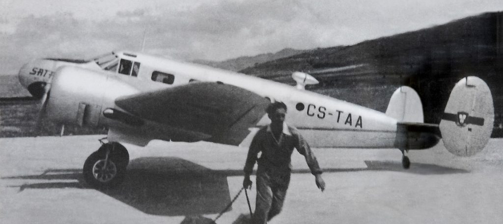 Um grupo de cinco açorianos notáveis (entre os quais Augusto Rebelo Arruda) tomou a iniciativa de lançar os fundamentos da empresa SATA Air Açores ao fundar, em 21 de Agosto de 1941, a Sociedade Açoriana de Estudos Aéreos, Lda. Passados seis anos, em 17 de Fevereiro de 1947, foi alterada a sua designação para Sociedade Açoriana de Transportes Aéreos, Lda. A 15 de Junho, a SATA iniciou os voos com um avião Beechcraft D18S prefixo CS-TAA, baptizado como "Açor". Transportava 7 passageiros e 2 membros de tripulação, e fazia as ligações aéreas entre as ilhas de São Miguel (na pista de Santana, até 1969), de Santa Maria e da Terceira (na pista da Achada, Lajes).